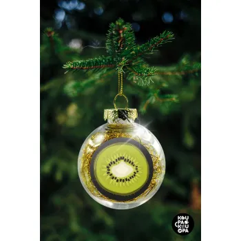 Kiwi, Transparent Christmas tree ball ornament with gold filling 8cm