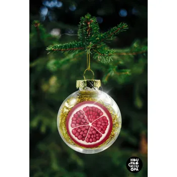 pomegranate, Transparent Christmas tree ball ornament with gold filling 8cm
