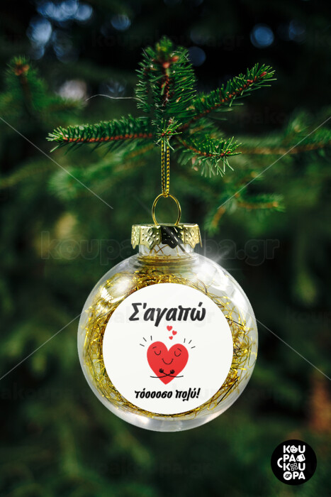 Σ΄αγαπώ τόοοοσο πολύ καρδιά, Transparent Christmas tree ball ornament with gold filling 8cm