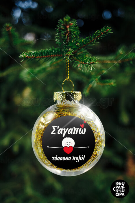 Σ΄αγαπώ τόοοοσο πολύ (Κορίτσι)!!!, Transparent Christmas tree ball ornament with gold filling 8cm