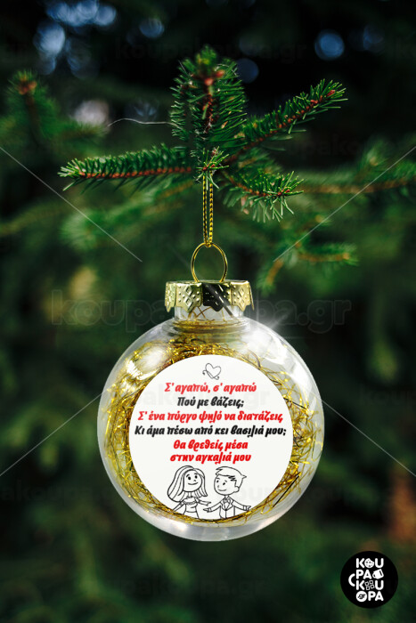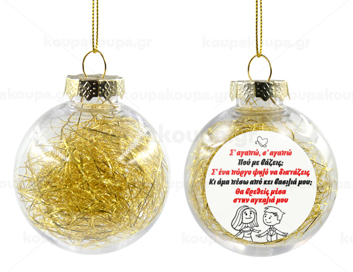 Σ΄ αγαπώ σ΄ αγαπώ που με βάζεις, Transparent Christmas tree ball ornament with gold filling 8cm