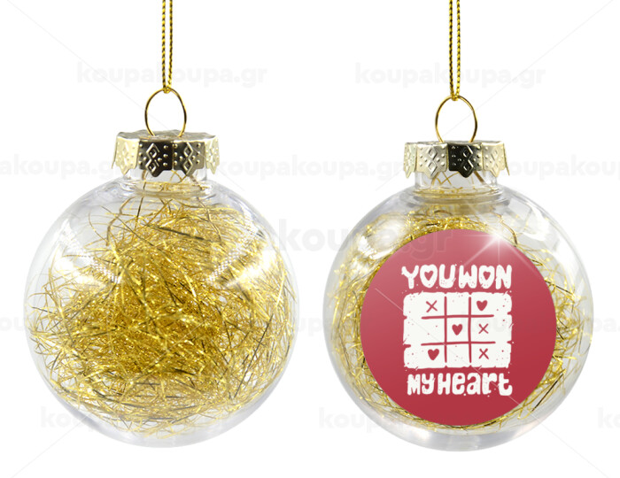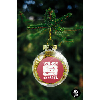 Τρίλιζα you won my heart, Transparent Christmas tree ball ornament with gold filling 8cm