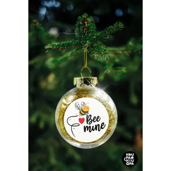 Bee mine!!!, Transparent Christmas tree ball ornament with gold filling 8cm
