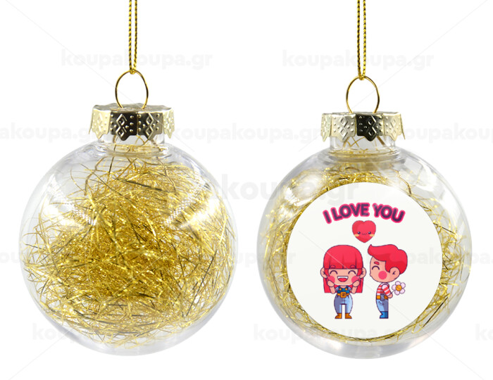 Couple, I love you, Transparent Christmas tree ball ornament with gold filling 8cm