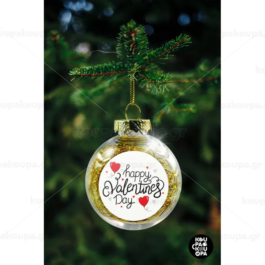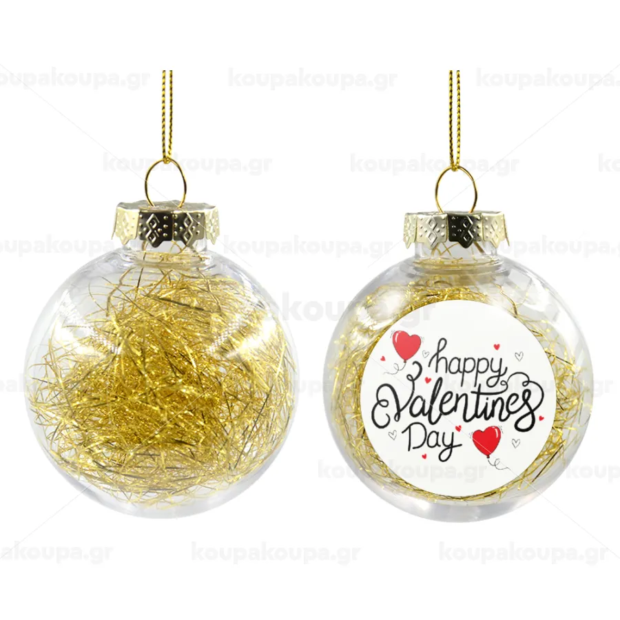Happy Valentines Day!!!, Transparent Christmas tree ball ornament with gold filling 8cm