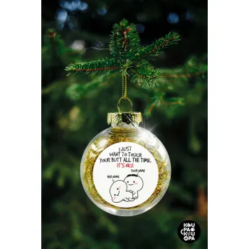 I Just Want To Touch Your Butt All The Time, Transparent Christmas tree ball ornament with gold filling 8cm