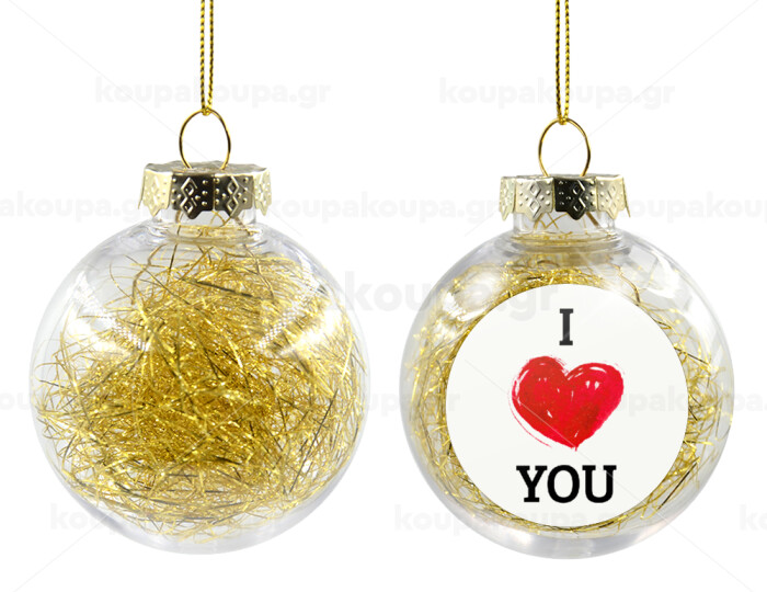 I Love You, Transparent Christmas tree ball ornament with gold filling 8cm