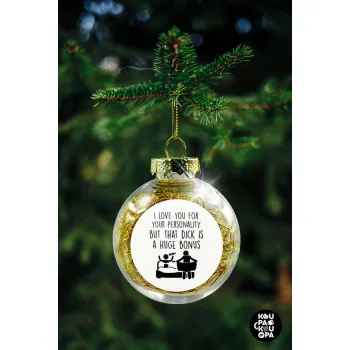 I Love You for Your Personality But that D... Is a Huge Bonus , Transparent Christmas tree ball ornament with gold filling 8cm