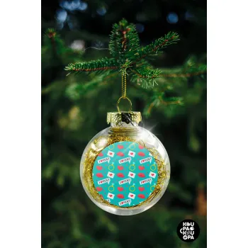 I Love You hearts rings & kiss pattern, Transparent Christmas tree ball ornament with gold filling 8cm