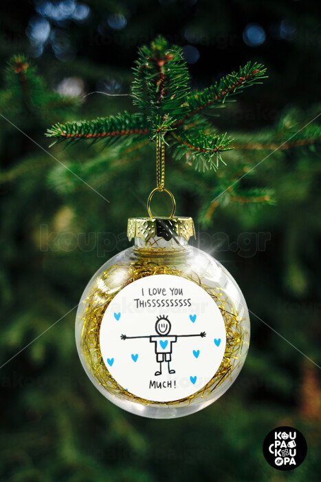 I Love you thissss much (boy)..., Transparent Christmas tree ball ornament with gold filling 8cm