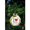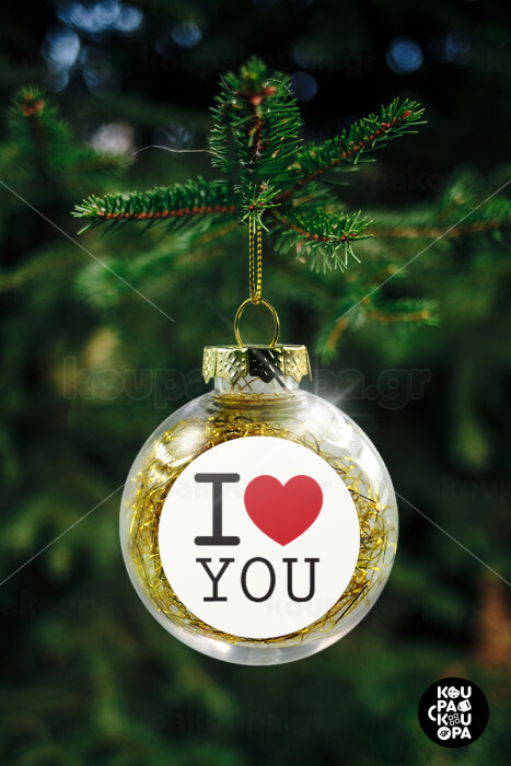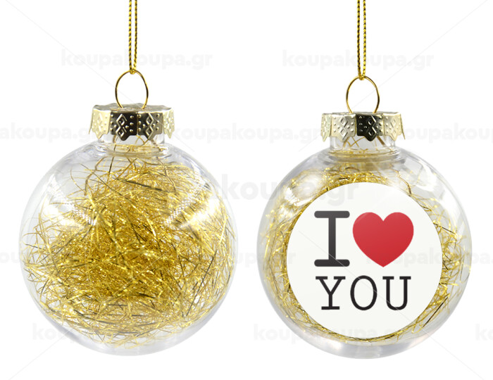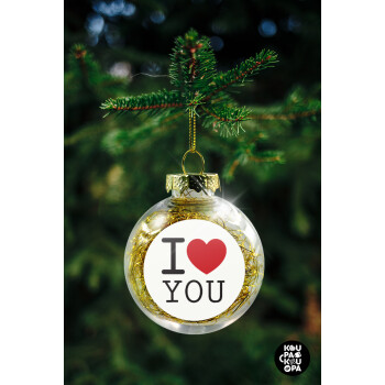 I Love you classic, Transparent Christmas tree ball ornament with gold filling 8cm