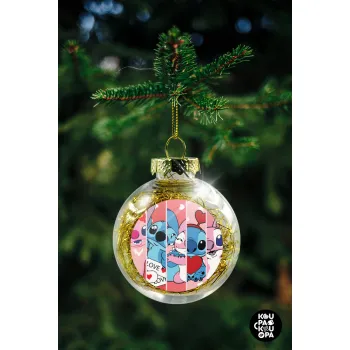 Lilo & Stitch Love, Transparent Christmas tree ball ornament with gold filling 8cm