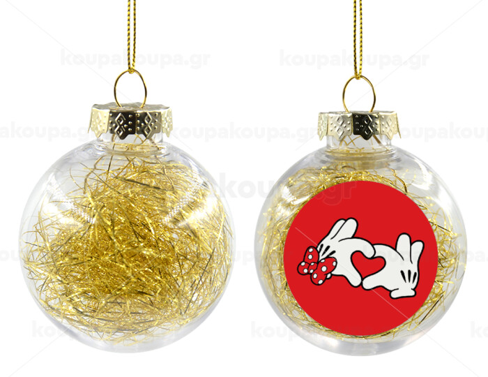 Love hands, Transparent Christmas tree ball ornament with gold filling 8cm