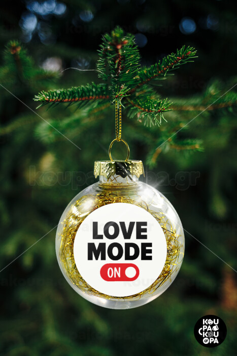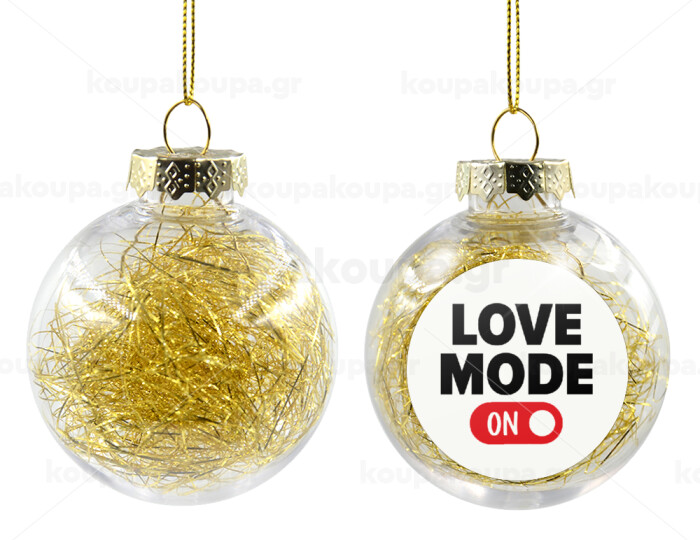 LOVE MODE ON, Transparent Christmas tree ball ornament with gold filling 8cm