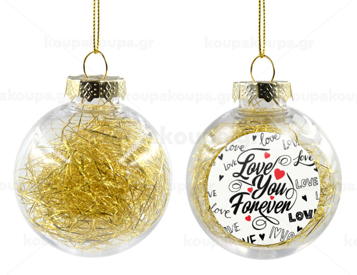Love You Forever, Transparent Christmas tree ball ornament with gold filling 8cm