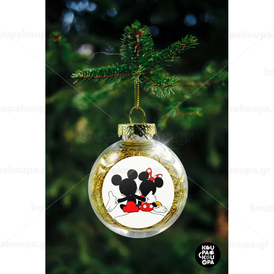 mickey and minnie hags, Transparent Christmas tree ball ornament with gold filling 8cm