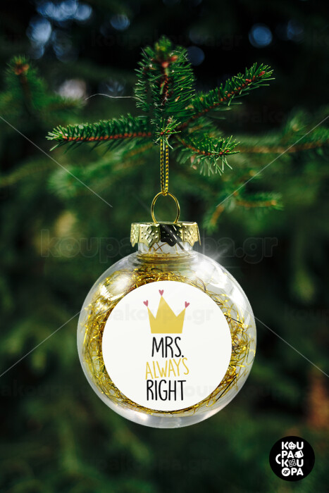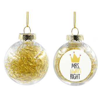 Mrs "Always" right, Transparent Christmas tree ball ornament with gold filling 8cm