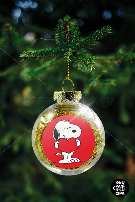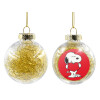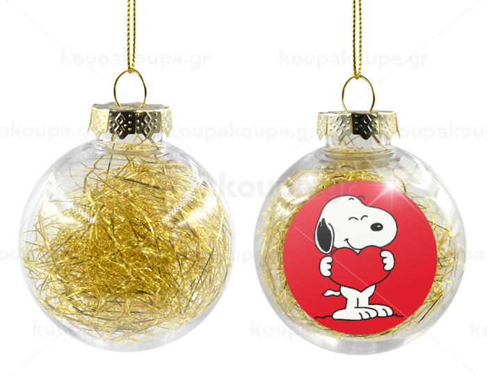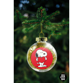 Snoopy takemy heart, Transparent Christmas tree ball ornament with gold filling 8cm