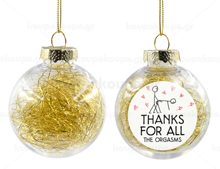 Thanks for all the orgasms, Transparent Christmas tree ball ornament with gold filling 8cm