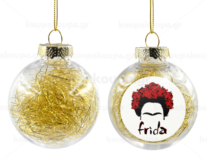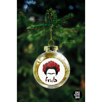 Frida, Transparent Christmas tree ball ornament with gold filling 8cm