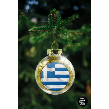 GREEK Flag, Transparent Christmas tree ball ornament with gold filling 8cm