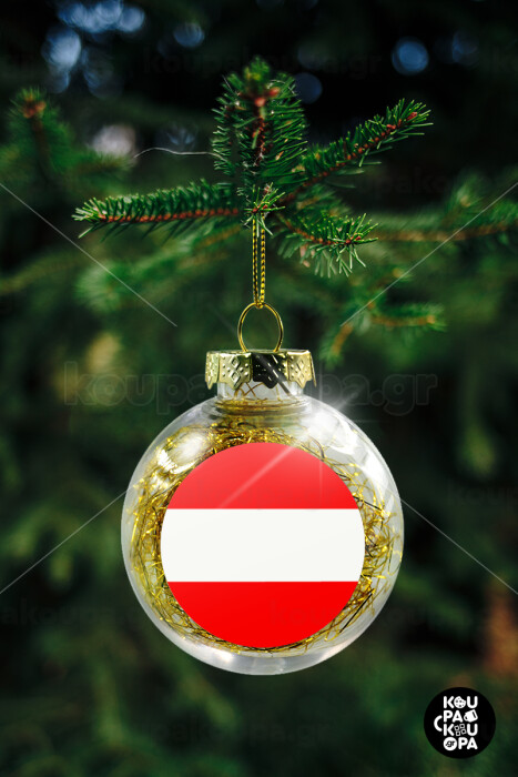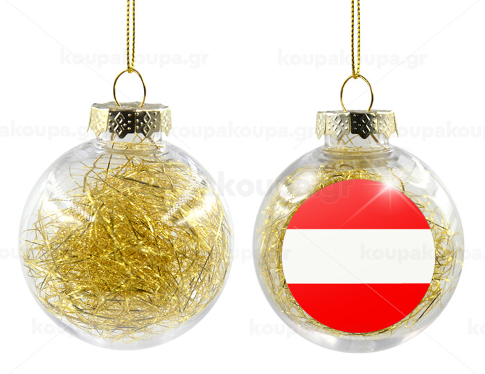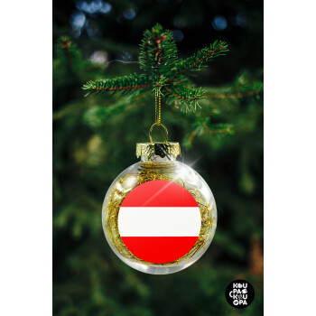Austria flag, Transparent Christmas tree ball ornament with gold filling 8cm