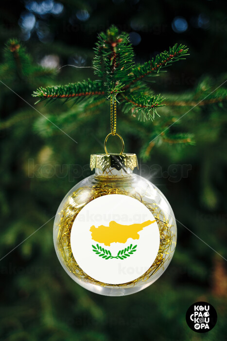 Cyprus flag, Transparent Christmas tree ball ornament with gold filling 8cm