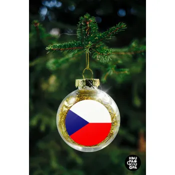 Czechia flag, Transparent Christmas tree ball ornament with gold filling 8cm