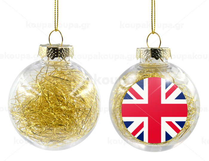 England flag, Transparent Christmas tree ball ornament with gold filling 8cm