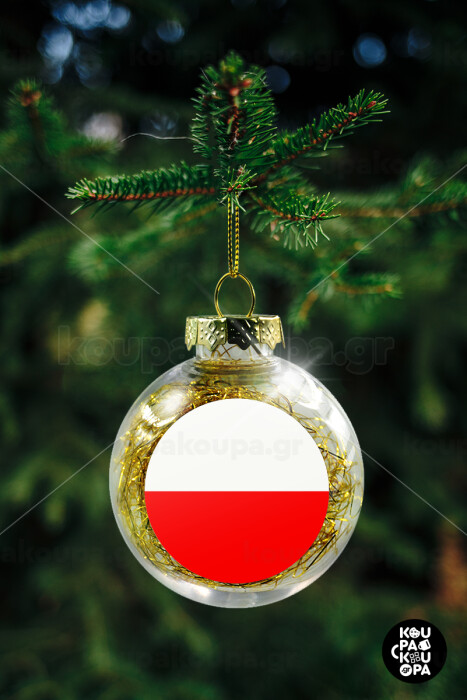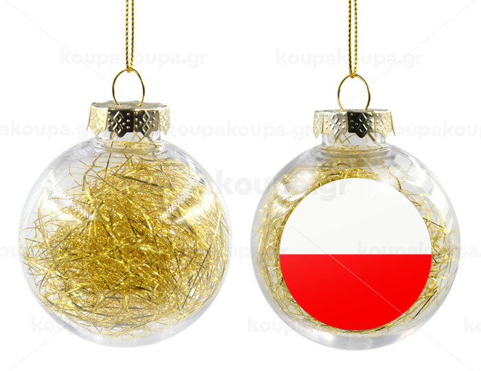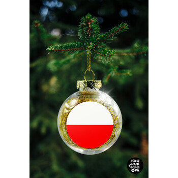 Poland flag, Transparent Christmas tree ball ornament with gold filling 8cm