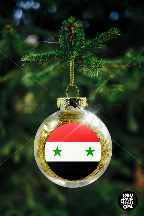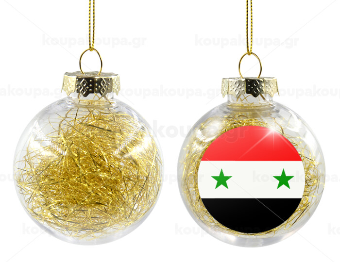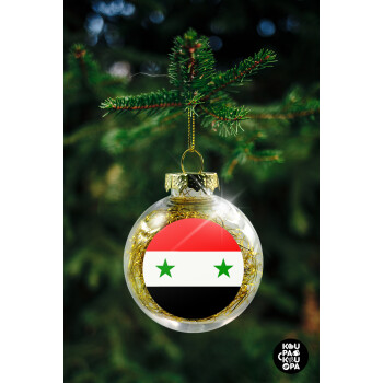 Syria flag, Transparent Christmas tree ball ornament with gold filling 8cm