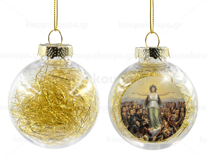 Η Ελλάς Ευγνωμονούσα, Transparent Christmas tree ball ornament with gold filling 8cm