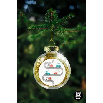 excavator along road, Transparent Christmas tree ball ornament with gold filling 8cm