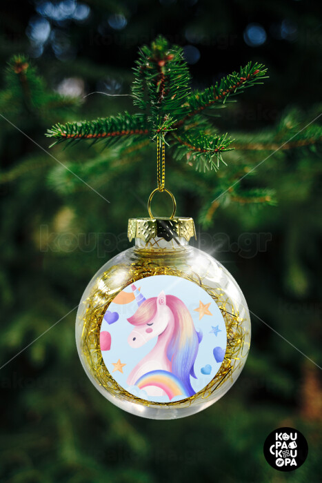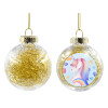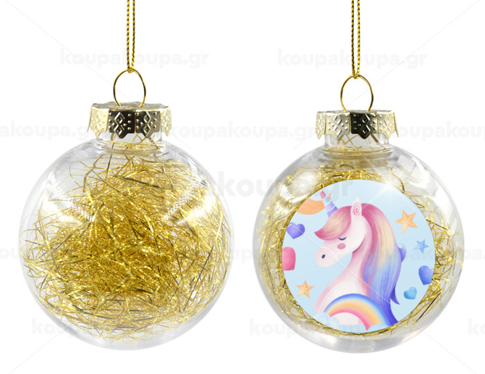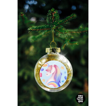 Cute unicorn, Transparent Christmas tree ball ornament with gold filling 8cm