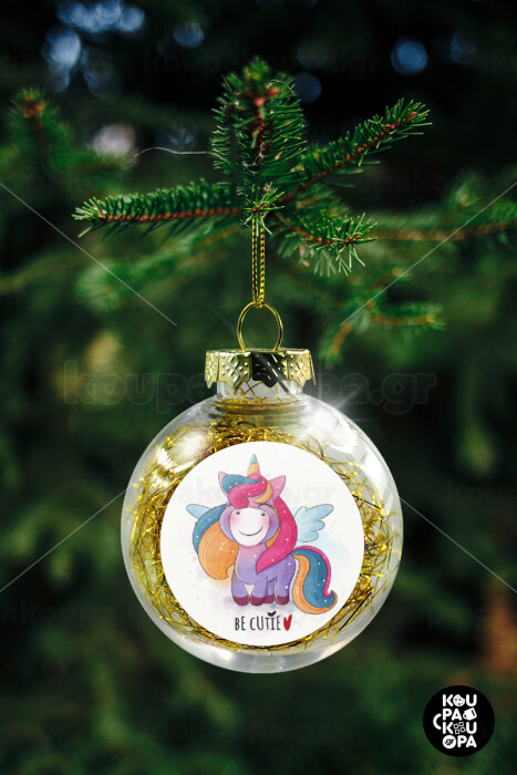 Pink unicorn, Transparent Christmas tree ball ornament with gold filling 8cm