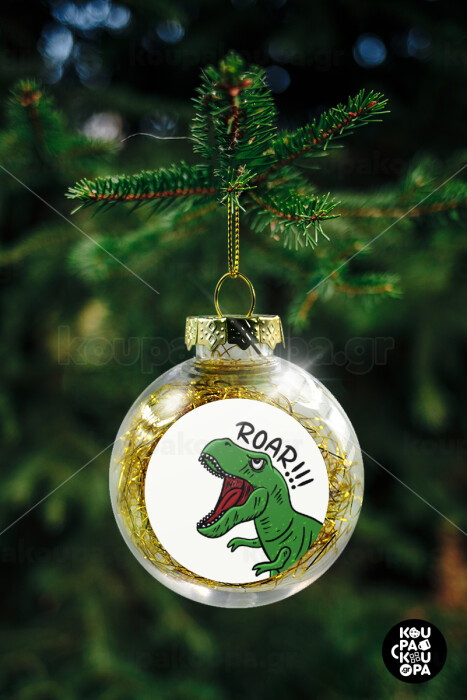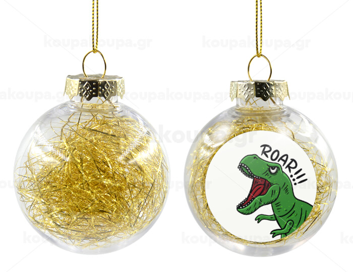 Dyno roar!!!, Transparent Christmas tree ball ornament with gold filling 8cm