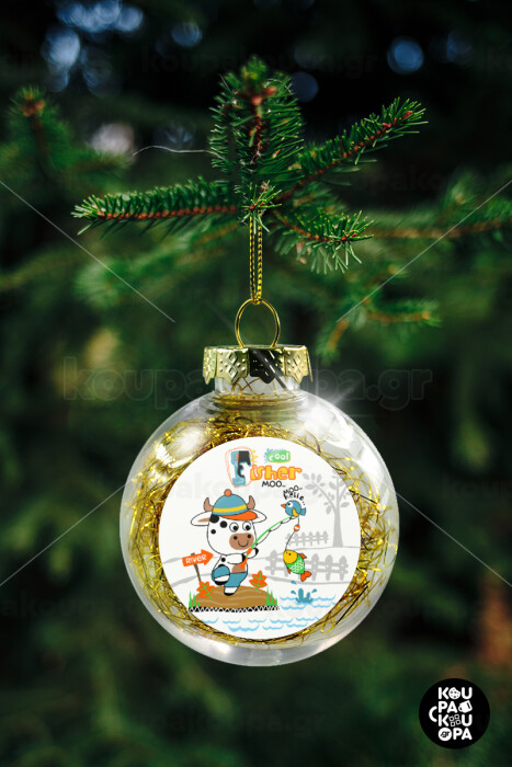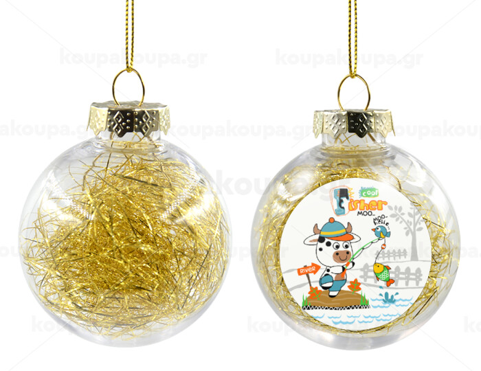 Kids Fisherman, Transparent Christmas tree ball ornament with gold filling 8cm