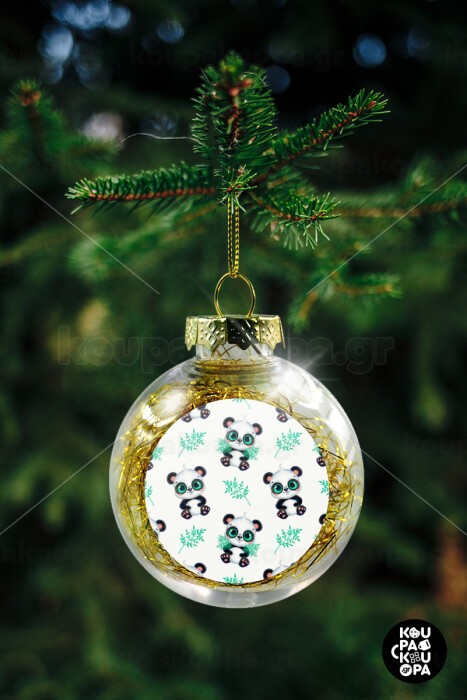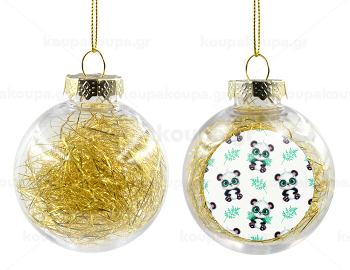 Panda, Transparent Christmas tree ball ornament with gold filling 8cm