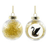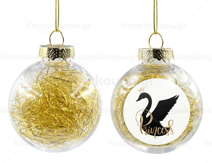 Swan Princess, Transparent Christmas tree ball ornament with gold filling 8cm