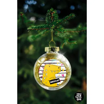 t-rex , Transparent Christmas tree ball ornament with gold filling 8cm