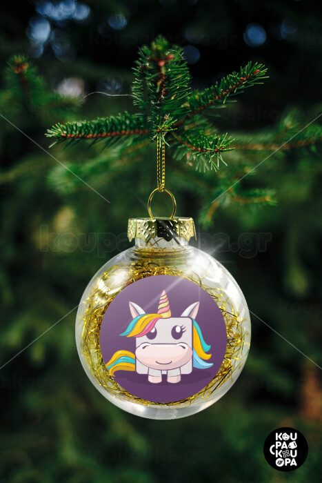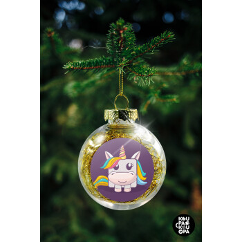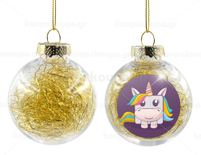 Unicorns cube, Transparent Christmas tree ball ornament with gold filling 8cm
