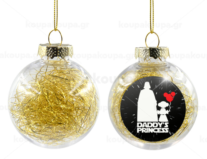 Daddy's princess, Transparent Christmas tree ball ornament with gold filling 8cm