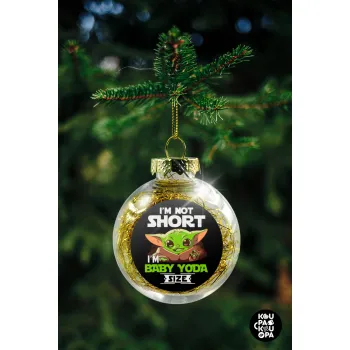 I'm not short, i'm Baby Yoda size, Transparent Christmas tree ball ornament with gold filling 8cm