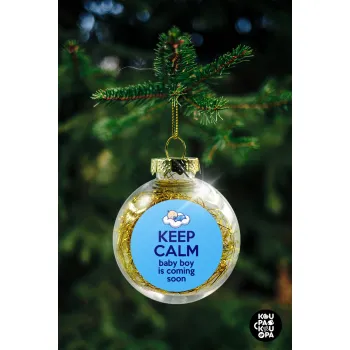 KEEP CALM baby boy is coming soon!!!, Transparent Christmas tree ball ornament with gold filling 8cm