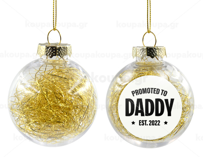 Promoted to Daddy, Transparent Christmas tree ball ornament with gold filling 8cm