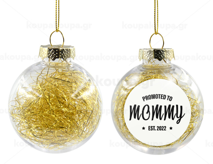 Promoted to Mommy, Transparent Christmas tree ball ornament with gold filling 8cm