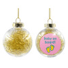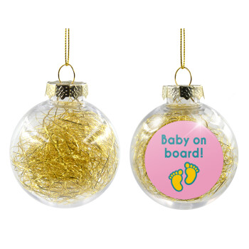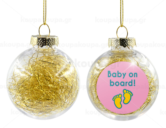 Baby on Board πατουσα Κορίτσι, Transparent Christmas tree ball ornament with gold filling 8cm