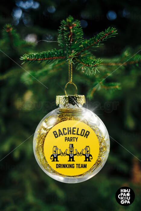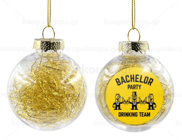Bachelor Party Drinking Team, Transparent Christmas tree ball ornament with gold filling 8cm