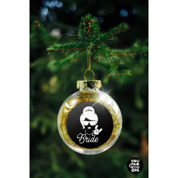 Bride hands, Transparent Christmas tree ball ornament with gold filling 8cm