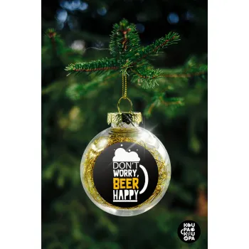 Don't worry BEER Happy, Transparent Christmas tree ball ornament with gold filling 8cm